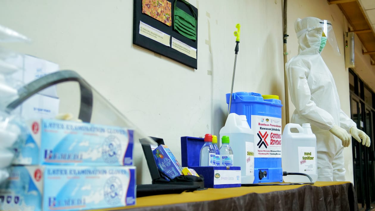 Adapun alat kesehatan yang diberikan berupa Alat Pelindung Diri, masker, hand sanitizer, cairan desinfektan, sepatu boat, face shield, velbed, dan beberapa kebutuhan pokok, seperti beras, shampoo, sabun, teh.